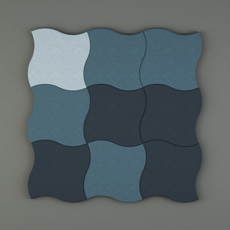 Ocean wall family are available in two different sizes easy suitable with open space or in a cramped room . To give the wall absorbents character we created a beveled edge of 8 x 8 mm around each panel that catches the light beautifully. In the development of Ocean we have carefully selected a number of suggestions of materials and colors that we believe can inspire to beautiful and functional wall environments.