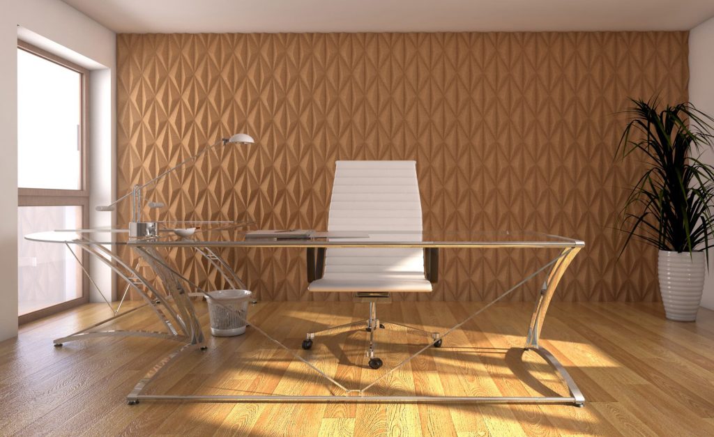 CorkBee recycled tiles make for an acoustic wall with visual impact