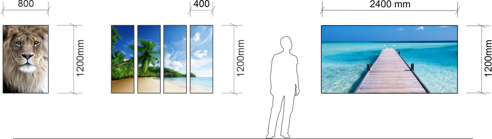 There are 3 standard size : 400 x 1200  |  800 x 1200  |  1200 x 2400mm (or any size on request)