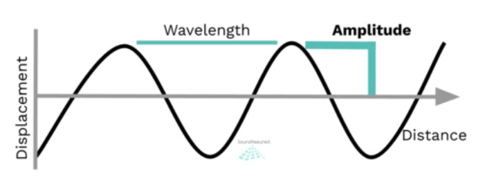 Amplitude is the distance above or below the centerline or the x-axis. The greater the distance away from the centerline the more intense the signal.
