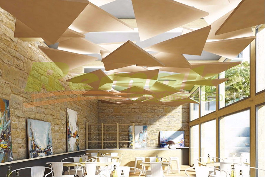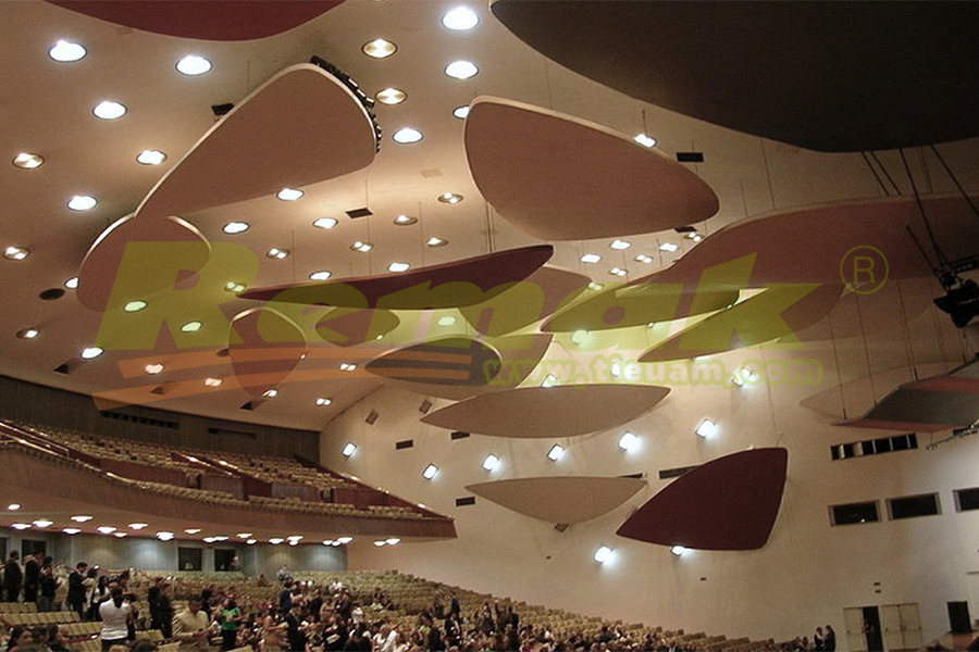 Các tấm tiêu âm hình đám mây thường được treo song song với trần nhà, và chúng có thể hấp thụ sóng âm thanh trong và ngoài phòng nhờ 2 đặc điểm sau: