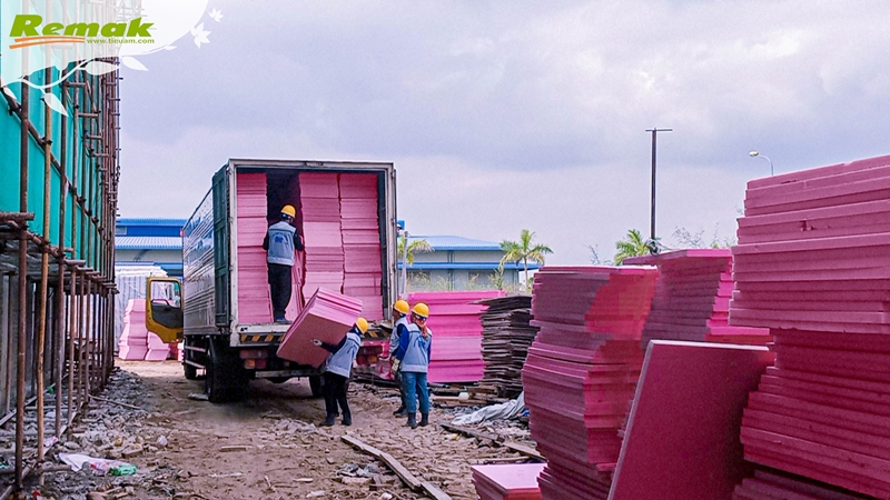 Nhà thầu thi công khu tổ hợp nhà máy tại KCN Đồ Sơn, Hải Phòng đặt đơn hàng số lượng lớn tấm xốp Remak ® XPS để cách nhiệt mái cho công trình.